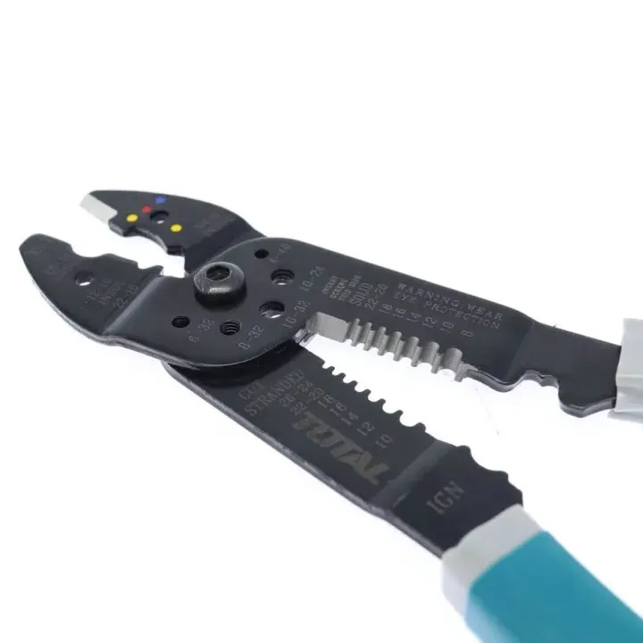 คุณสมบัติ TOTAL คีมย้ำหางปลา คีมอเนกประสงค์ คีมตัดสาย คีมปอกสาย คีมย้ำหัว คีมตัดหัวน๊อต ขนาด 8.5นิ้ว THT15851