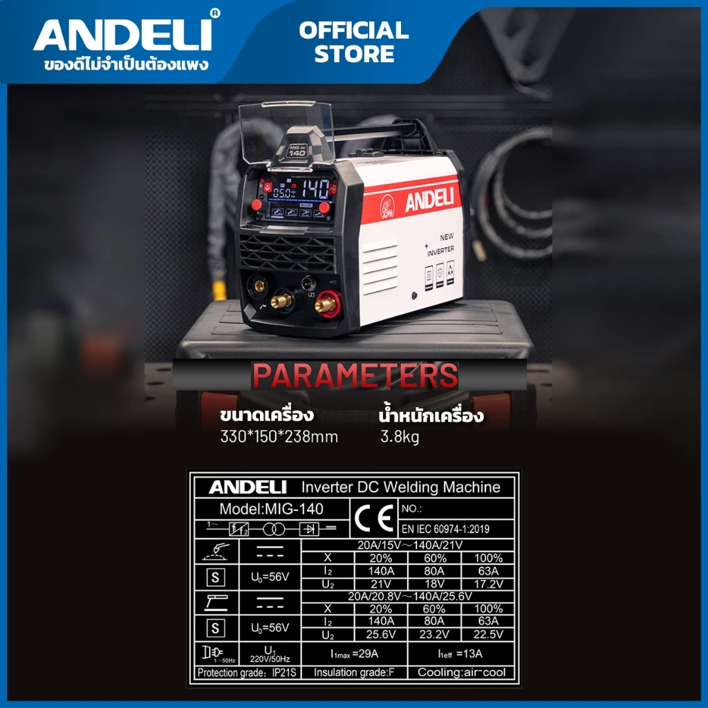 ตู้เชื่อม3ระบบ MIG-140PLUS Ver.5 ANDELI (แอนดิลี)