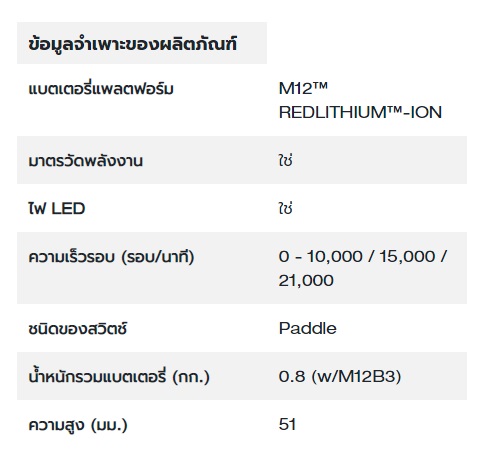 - เทคโนโลยีแบตเตอรี่ M12 REDLITHIUM™-ION