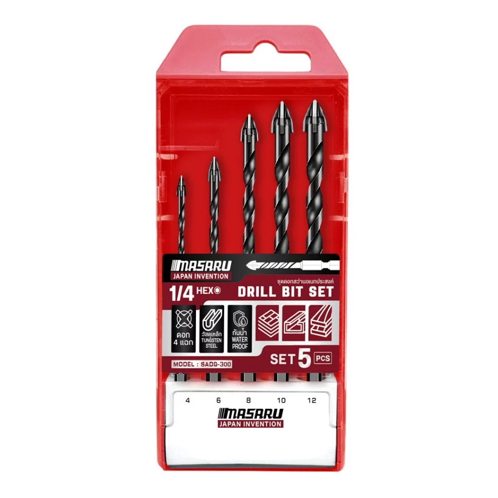 MASARU ชุดดอกเจาะสว่าน รุ่น SADG-300 5 ชิ้น (4,6,8.10,12mm) ดอกสว่าน ดอกเจาะ ชุดดอกสว่าน